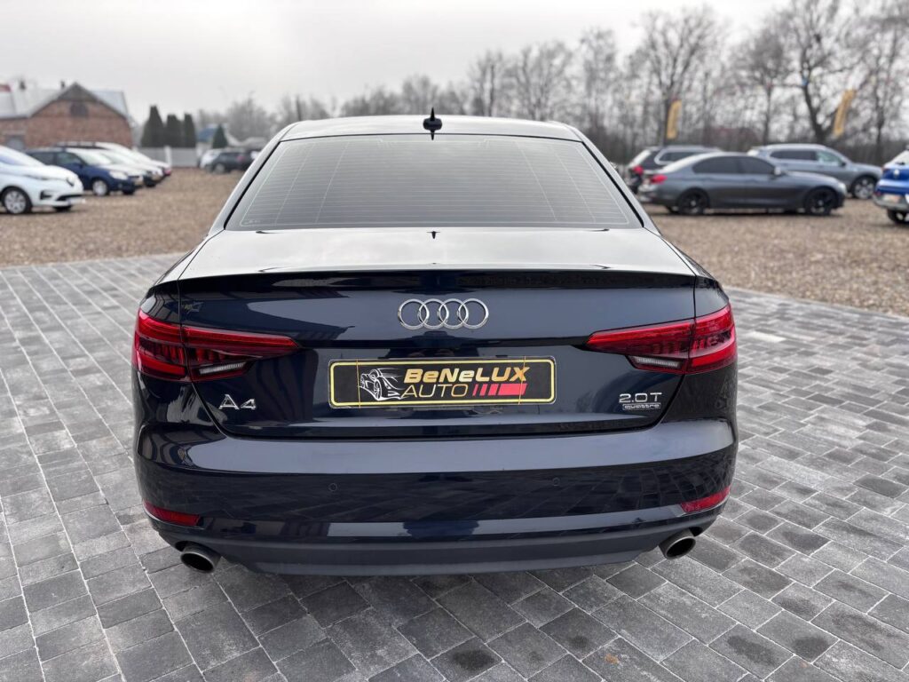 Audi A4 2016р.в. 2.0 бензин автомат повний приід. Автомобіль в ідеальному технічному та візуальному стані. Хороша комплектація: світлий шкіряний салон, 2-х зонний клімат контроль, підігрів сидінь, лед оптика, люк, датчик світла та дощу, повний привід, безключевий доступ,камера заднього виду та багато іншого. Автомобіль вже на зимовій гумі. Запрошуємо на огляд та тест-драйв.