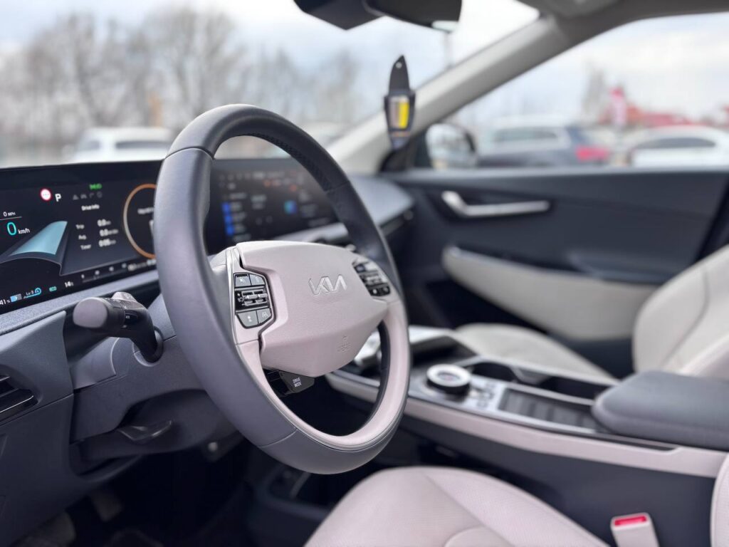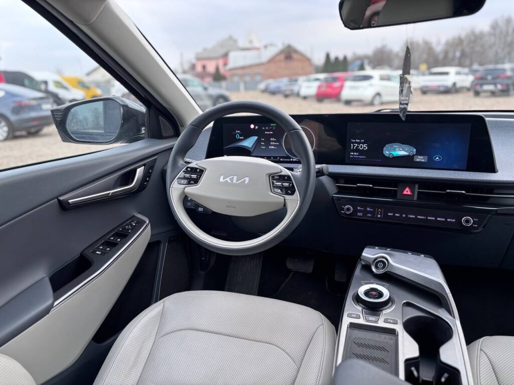 KIA EV6 2022р.в. 77KwT 65тис км оригінального пробігу. Автомобіль свіжопригнаний,розмитнений та зареєстрований. Ідеальний технічний та візуальний стан. Хороша комплектація: шкіряний салон, обдув та підігрів сидінь, камера заднього виду, електро кришка багажника, кліма контроль, датчики світла та дощу, бездротова зарядка, акустика Meridian, безключевий доступ та багато іншого. Запрошуємо на огляд та тест-драйв.
