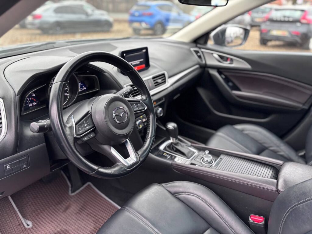Mazda 3 2016р.в. 2.5 бензин автомат 84тис км. Автомобіль в ідеальному технічному та візуальному стані. Хороша комплектація: Безключовий доступ, датчик світла та дощу , люк, підігрів сидінь, камера заднього виду, датчики тиску шин, Bluetooth, клімат контроль, Литі диски. Запрошуємо на огляд та тест-драйв.