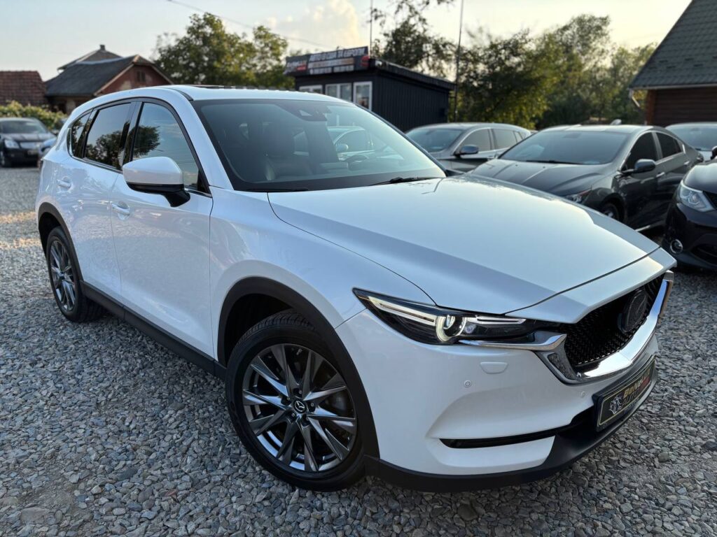 Mazda CX-5 2019р.в. 2.2 дизель автомат повний привід. Автомобіль в ідеальному технічному та візуальному стані. Максимальна комплектація Signature: колір кузова білий перламутр, led оптика, оригінальні легкосплавні диски, безключевий доступ, датчики світла та дощу, коричневий шкіряний салон, bose акустика, електро привід кришки багажника, електро регулювання передніх сидінь, підігрів сидінь, обдув сидінь, 2-х зонний клімат контроль, дістронік, круїз контроль та багато іншого. Запрошуємо на огляд та тест-драйв.
